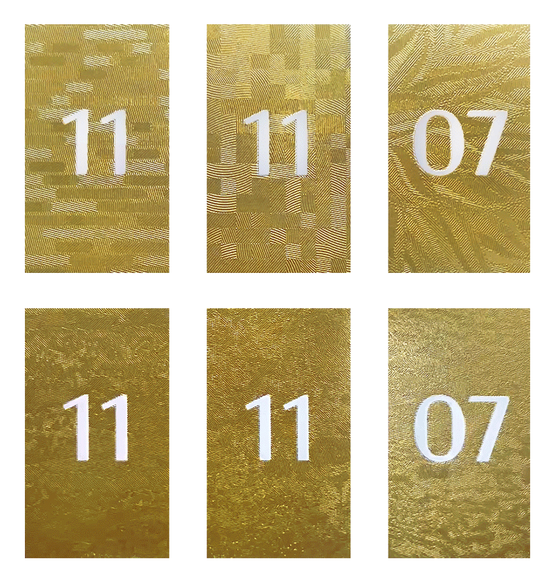 這項技術,我們曾用於一場展覽中,藝術家委託製作限量畫框卡片,在燈光照射下產生神秘的金色軌跡。