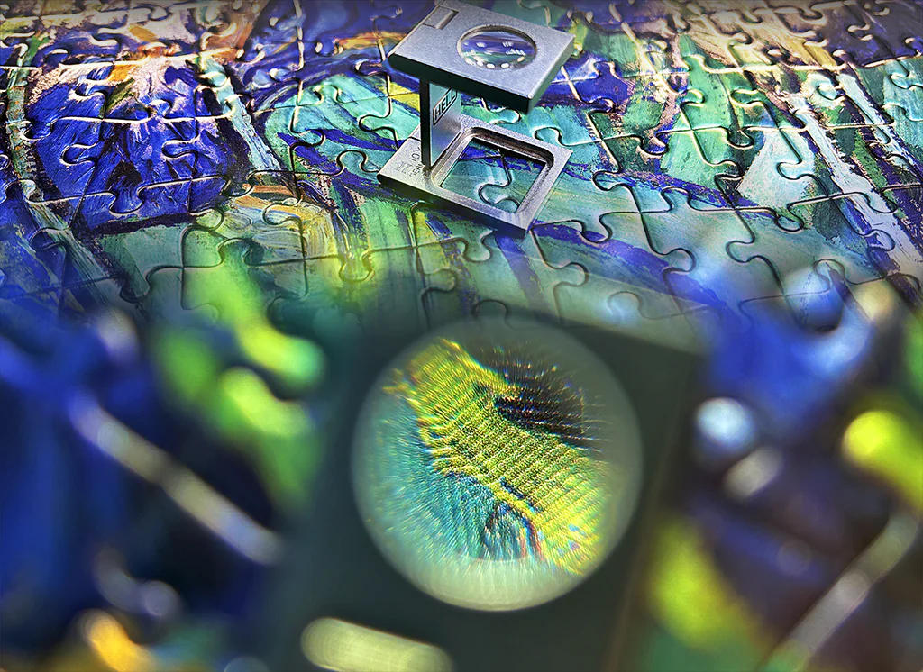 幾年前,我們在開發一款拼圖產品時,出現了讓客戶驚喜不已的畫面:當拼圖圖樣在燈光下略微轉動,原本靜止的畫面竟像是活了過來─光影沿著線條游走,閃爍流動,讓人目不轉睛。