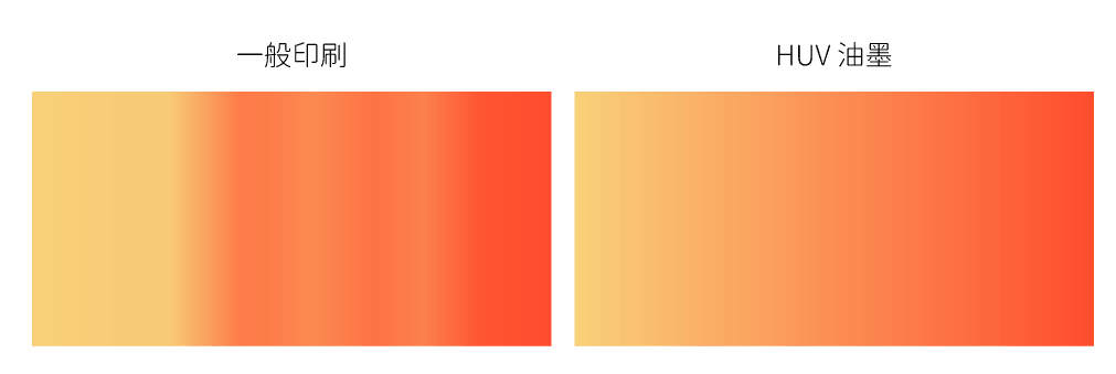 - HUV 油墨(Hybrid UV Ink),這是一種在印刷界被廣泛視為解決方案的特殊油墨。它屬於紫外線(UV)固化型油墨的範疇,但與傳統 UV 油墨不同的是,HUV 油墨能以更低的能量瞬間乾燥。