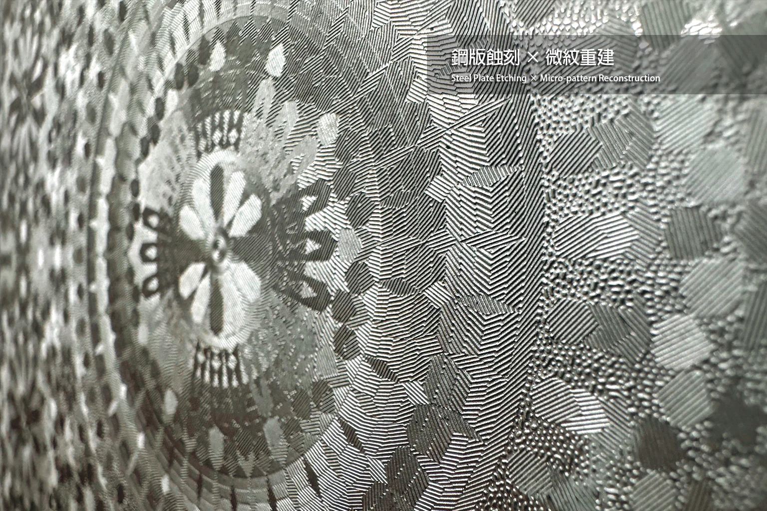 上述光學數據進一步轉化為雕刻資訊,透過鋼版蝕刻技術,在金屬模具上生成細若髮絲的光影紋理。這些紋理經由壓印轉移至拼圖表面,成為實體化的光學結構。當觀者轉動拼圖,這些紋理將改變光的反射路徑,形成流動、跳動與隱現的效果,彷彿畫作本身擁有呼吸節奏。